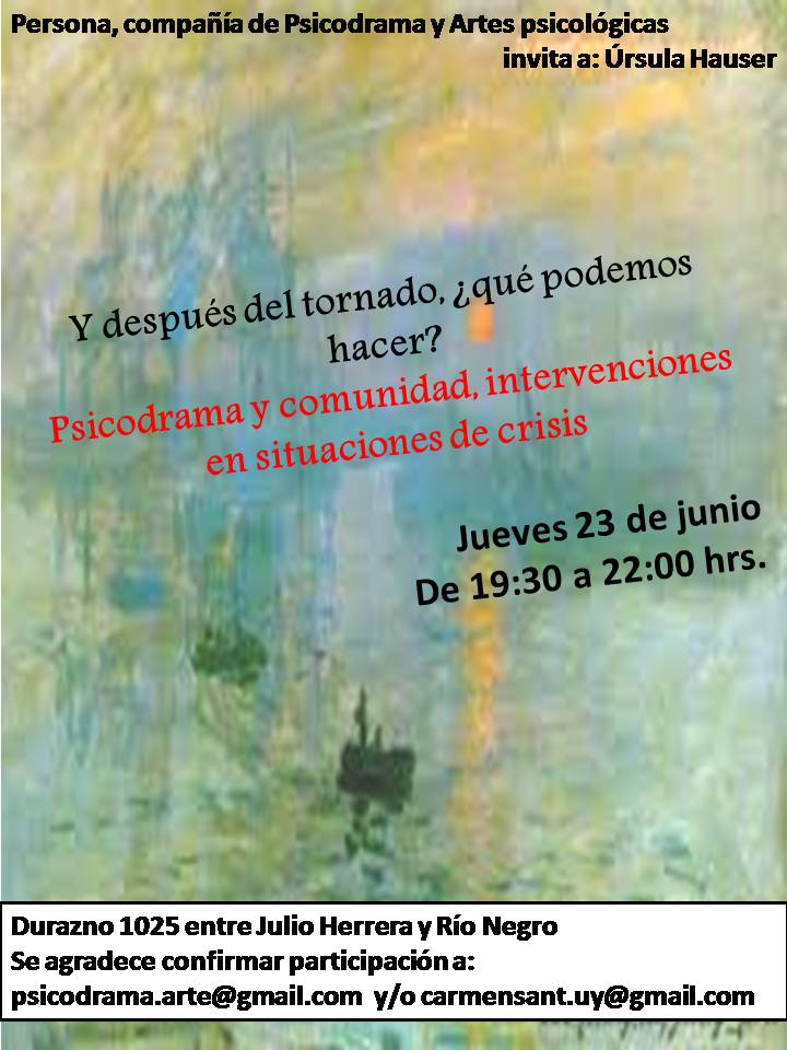 Tenemos el gusto de invitar a la entrevista- taller que dará Úrsula Hauser, el próximo el jueves 23 de junio en Persona, compañía de Psicodrama y Artes Psicológicas, en el marco de Grafía: grupo de formación e investigación en Psicodrama.